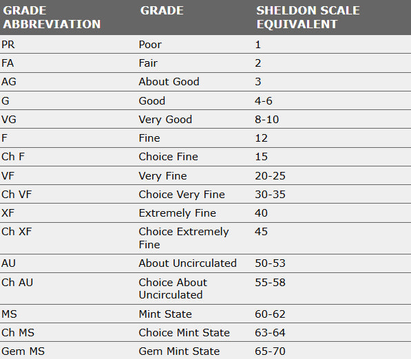 Rather than using the modern 1–70 numerical scale, NGC Ancients uses a descriptive (adjectival) grading system. This system focuses on: