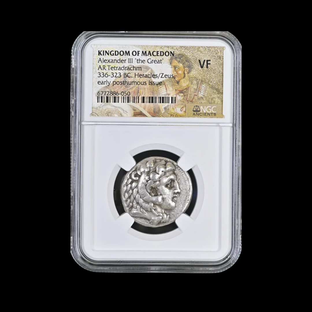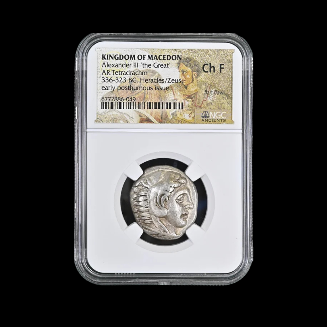 This impressive silver tetradrachm was struck in the name of Alexander the Great, the most celebrated conqueror of antiquity. Issued in the years immediately following his death in 323 BC, it represents the continuation of his legacy and coinage as an international currency standard throughout the Greek world and beyond.