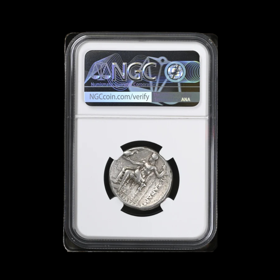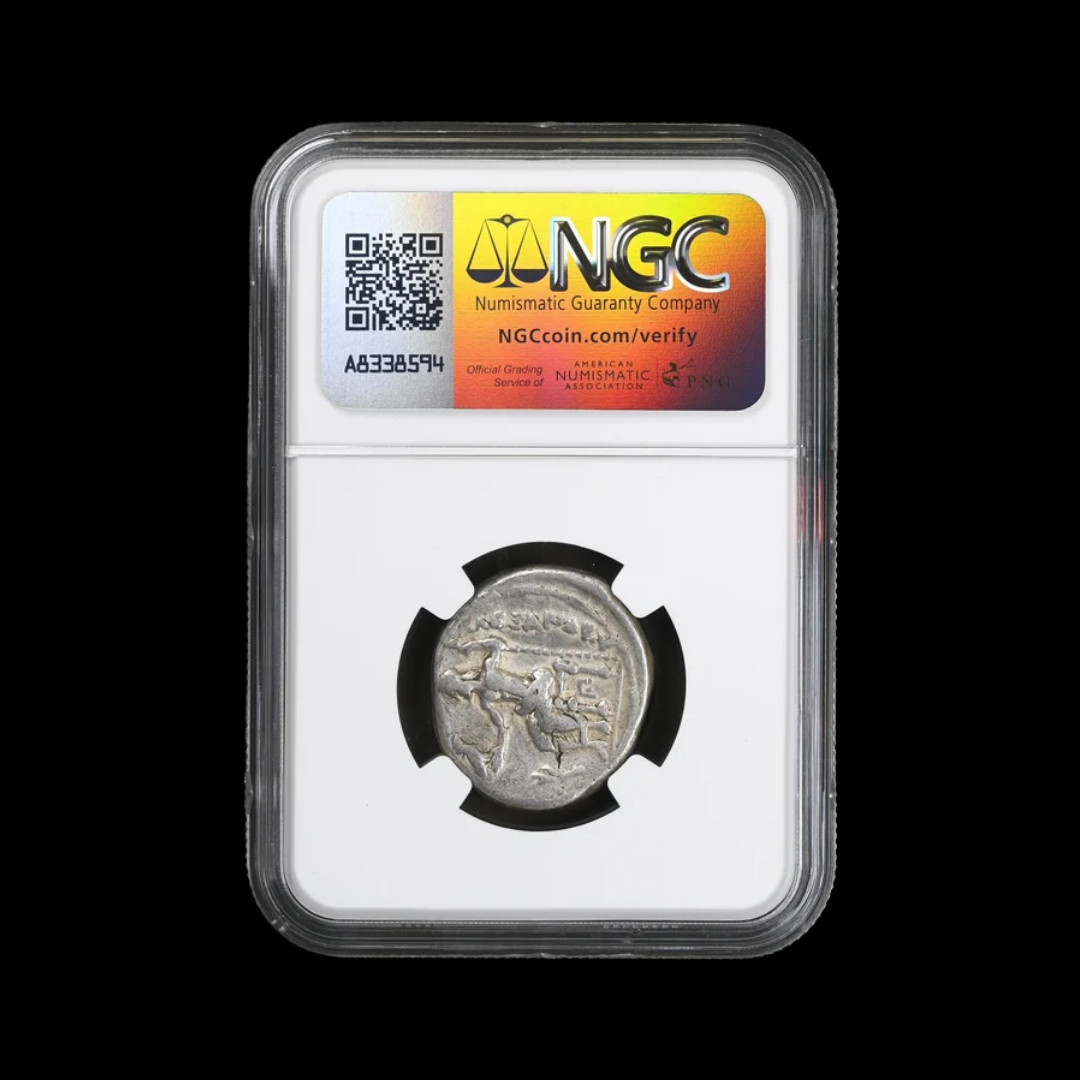 Graded VF by NGC, this coin offers strong detail and excellent eye appeal, with both obverse and reverse devices clearly visible. Its historical importance, combined with the artistry of its design, makes it an essential type for collectors of Greek and Hellenistic coinage.